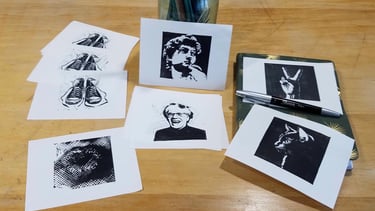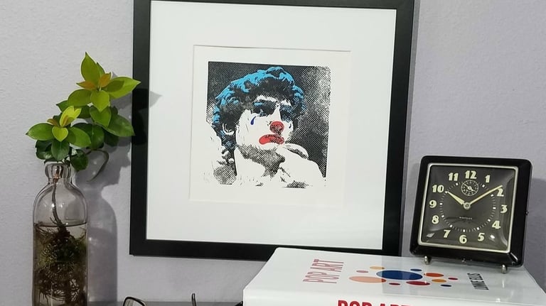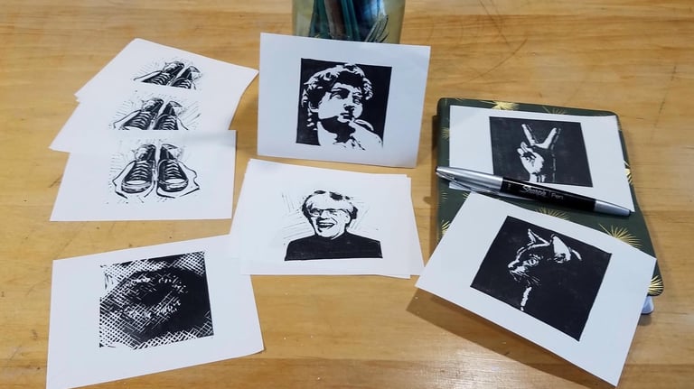 I work in a few different styles and media — pop‑art‑inspired linocuts, intricate collages, and drawing both as a foundation for those and for its own sake — and each one has its own rhythm and purpose. You might have arrived here from TikTok or Instagram after seeing a collage reel, from Etsy for made‑from‑scratch, on‑demand linocuts, or from Facebook for Affordable Originals: original handmade art at collectible prices. However you got here, this is the place where everything connects.