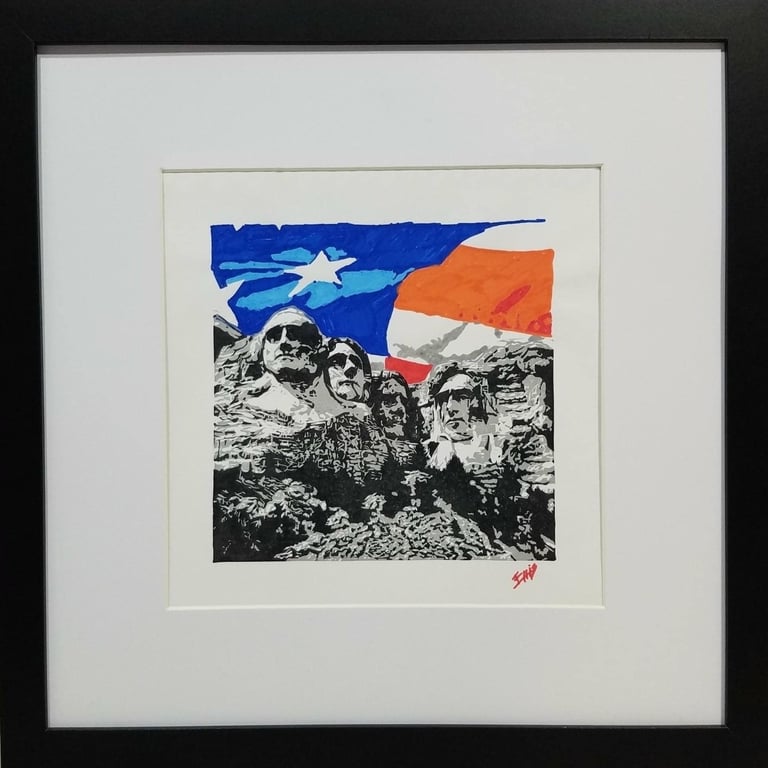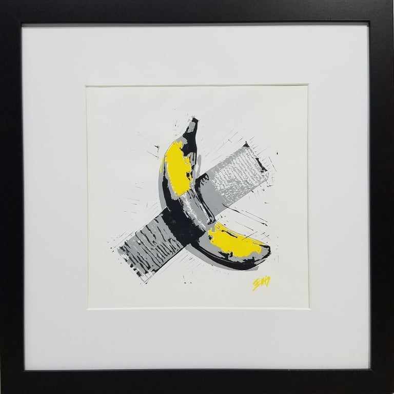 6″ × 6″ hand-printed linocut on 8.5″ × 11″ 100% cotton paper that has been hand-tinted with acrylic markers