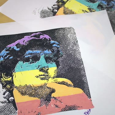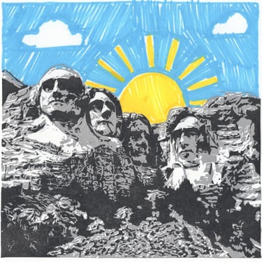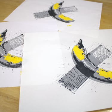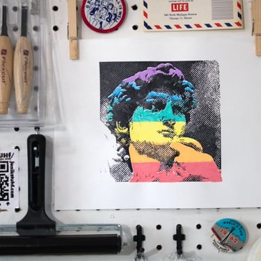 6″ × 6″ hand-printed linocut on 8.5″ × 11″ 100% cotton paper that has been hand-tinted with acrylic markers